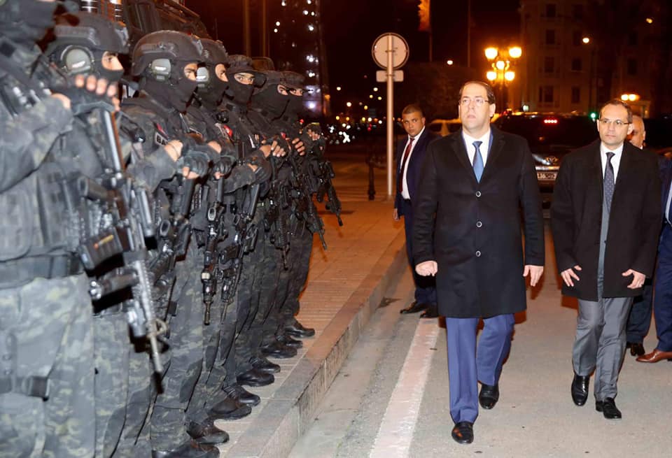 أدّى رئيس الحكومة يوسف الشاهد زيارة إلى مقر وزارة الداخلية وقاعة العمليات المركزية اطلع خلالها على جاهزية الفوج الوطني لمقاومة الارهاب كما اطلع على جاهزية الوحدات الأمنية واستعدادها لتأمين عطلة رأس السنة وتأمين مداخل المناطق السياحية ومخارجها والطرقات والمنشآت السياحية.