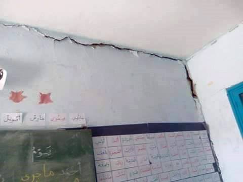 تصدعات وتشققات.. أوساخ ومأساة قد تلخص وجع التلاميذ الذين يرتادون المكان يوميا بابتسامة بريئة متطلعين إلى غد أفضل ..باحثين عن العلم والنور الكفيلين بإخراجهم من عزلتهم.
