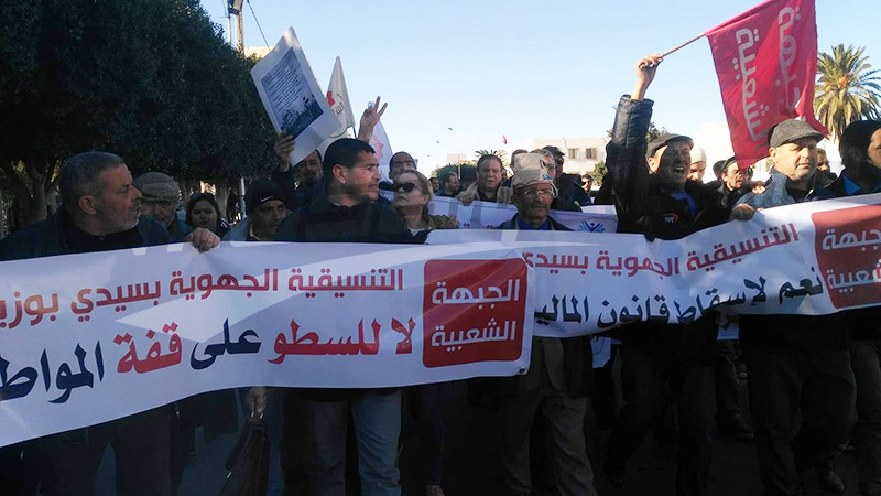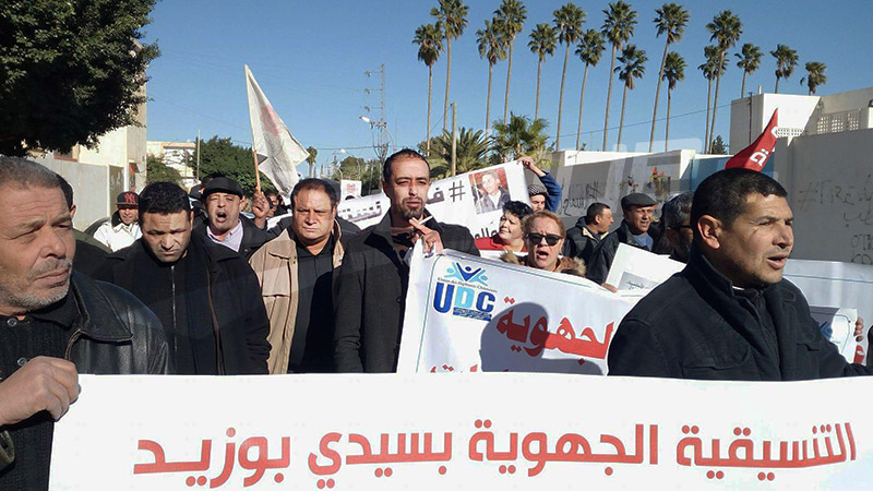 ورفعت شعارات مندّدة بقانون المالية لسنة 2018 و غلاء الاسعار وبما وصفه المحتجون بـ''هشاشة التعاطي الحكومي ازاء جهة سيدي بوزيد المفقرة والمهمشة وعدم ايلاء ملفي التنمية والتشغيل الاهمية اللازمة امام تنامي ظاهرة البطالة وفي ظل غياب المصانع بالجهة''.