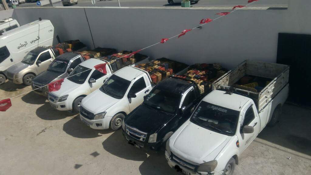 تمكنت فرقة الأبحاث العدلية وسرية التدخلات السريعة باقليم الحرس الوطني بسليانة مساء أمس الخميس 29 مارس 2018، من ايقاف 6 شاحنات محملة ببضاعة مهربة قادمة من القطر الجزائري في اتجاه العاصمة على مستوى معتمدية الروحية.