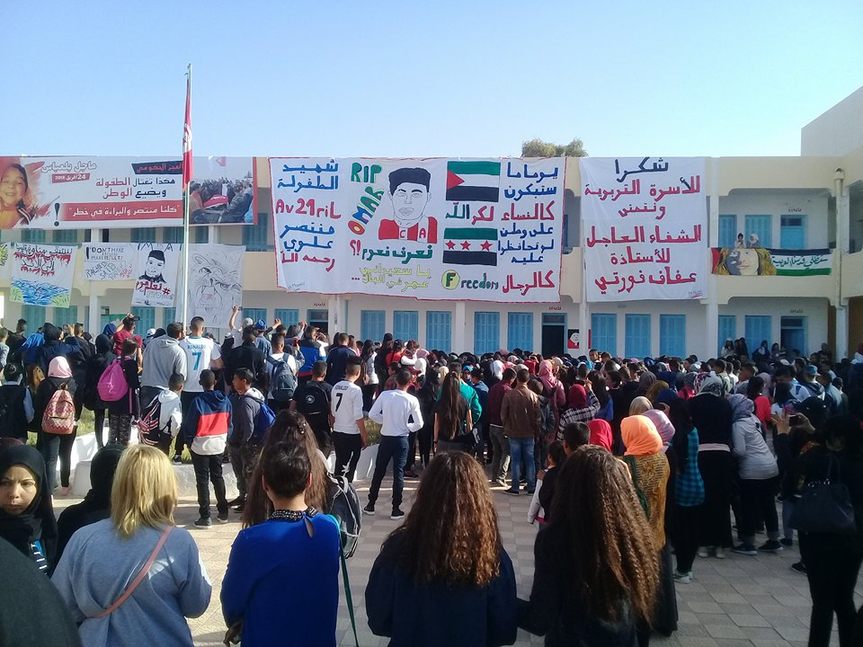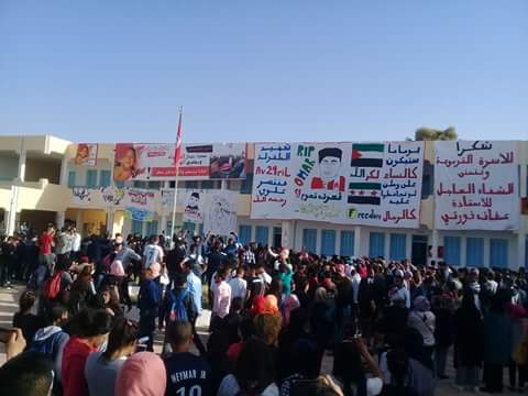 شهدت 'دخلة' المعهد الثانوي بماجل بالعباس من ولاية القصرين في امتحان البكالوريا رياضة اليوم الثلاثاء 24 أفريل 2018 حضور شعارات ذكر من خلالها التلاميذ بوفاة الطفل منتصر العلوي جراء الالتهاب الكبدي الفيروسي السنة الفارطة بماجل بالعباس.