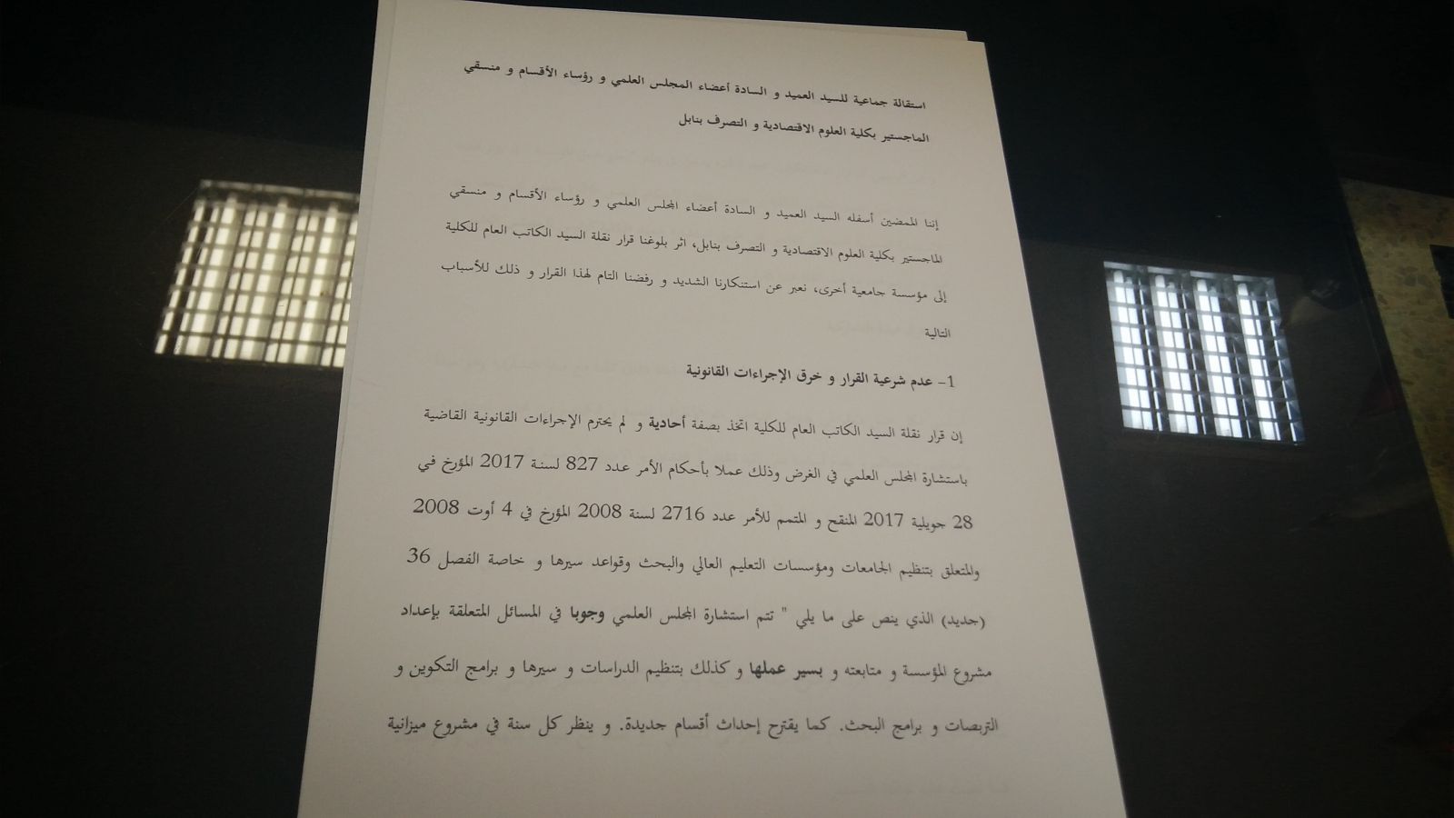 وأشار إلى اتصاله بوزارة التعليم العالي في اكثر من مناسبة، ومراسلتها عبر البريد الالكتروني دون تلقي أي اجابة، مشيرا الى امكانية التراجع عن الاستقالة في صورة تم التراجع عن قرار نقلة كاتب عام الجامعة.