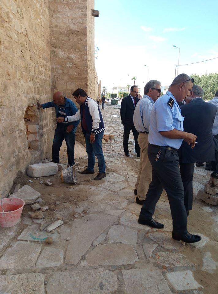 أكد الملحق الاعلامي لولاية المنستير سامي طرشون أنه تم بإذن من اكرم السبري والي المنستير وبحضور رئيس بلدية  المنستير وممثلي المعهد الوطني للتراث وحضور ممثلي مختلف الإدارات و المصالح الأمنية المعنية، تم إصلاح الثقب الذي أحدثه عدد من متساكني المدينة العتيقة بسورها.