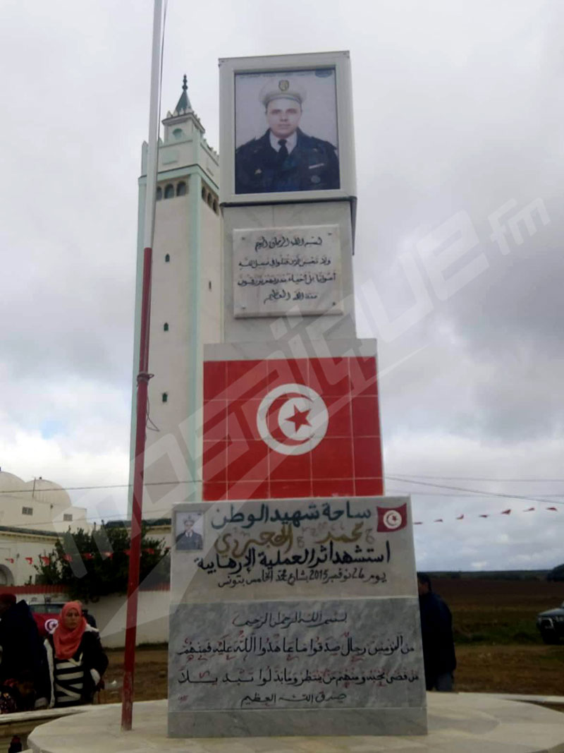 وحضر إحياء الذكرى كل من والية نابل وكافة الاطارات الأمنية في الجهة ومدير الأمن الرئاسي والنائبين عن الجهة معز بلحاج رحومه ولمياء الغربي، وقد تم بالمناسبة تدشين نصب تذكاري للشهيد وسط المدينة.