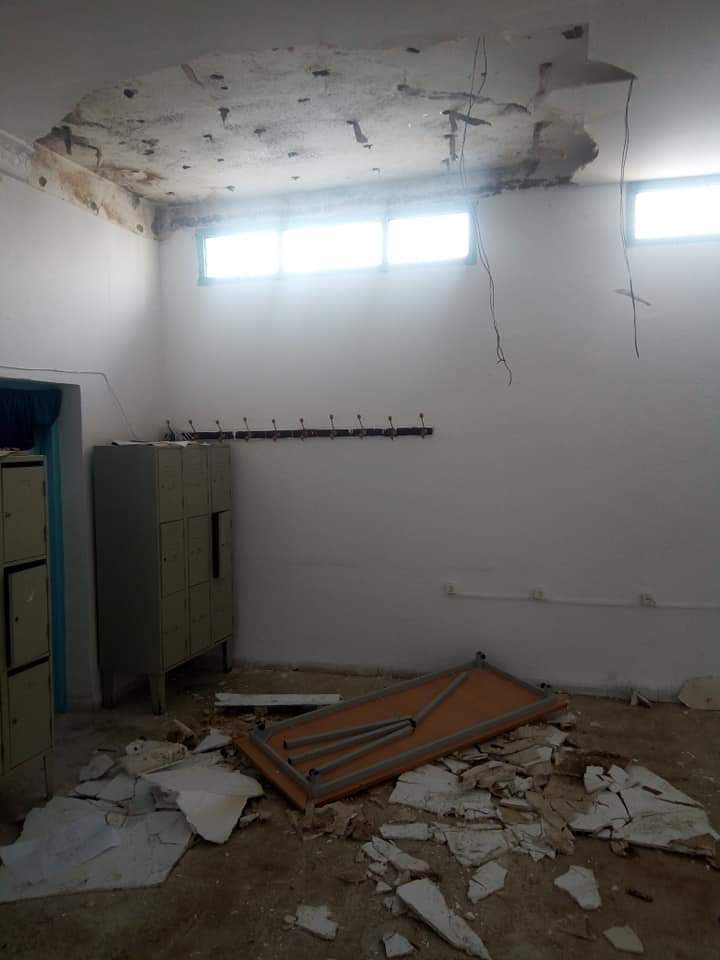 انهار اليوم الاثنين 28 جانفي 2019 جزء من سقف قاعة الأساتذة بمعهد ابن شرف بتالة من ولاية القصرين دون تسجيل خسائر بشرية.