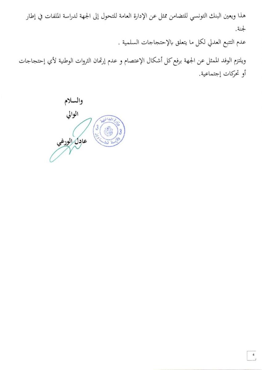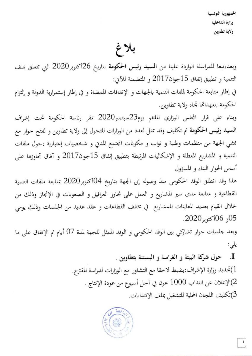 الاتفاق بين الوفد الحكومي والوفد المفاوض الممثل لتطاوين