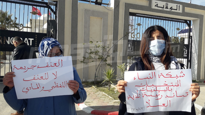 نفّذ رؤساء بلديات ولاية القيروان وقفة احتجاجية، اليوم الخميس 7 جانفي 2021 أمام مقر الولاية رافعين شعارات تضامنية مع رئيسة بلدية العلا، حياة الفجاري التي تعرّضت مؤخرا للعنف الجسدي واللفظي داخل مقر البلدية.