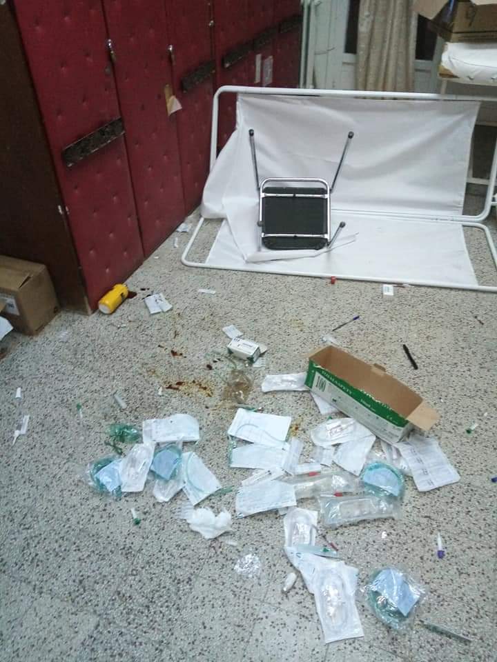 وشهد المستشفى حالة من الفوضى العارمة قبل وصول تعزيزات أمنية مكثفة مع فتح محضر بحث في الغرض دون تسجيل ايقافات.