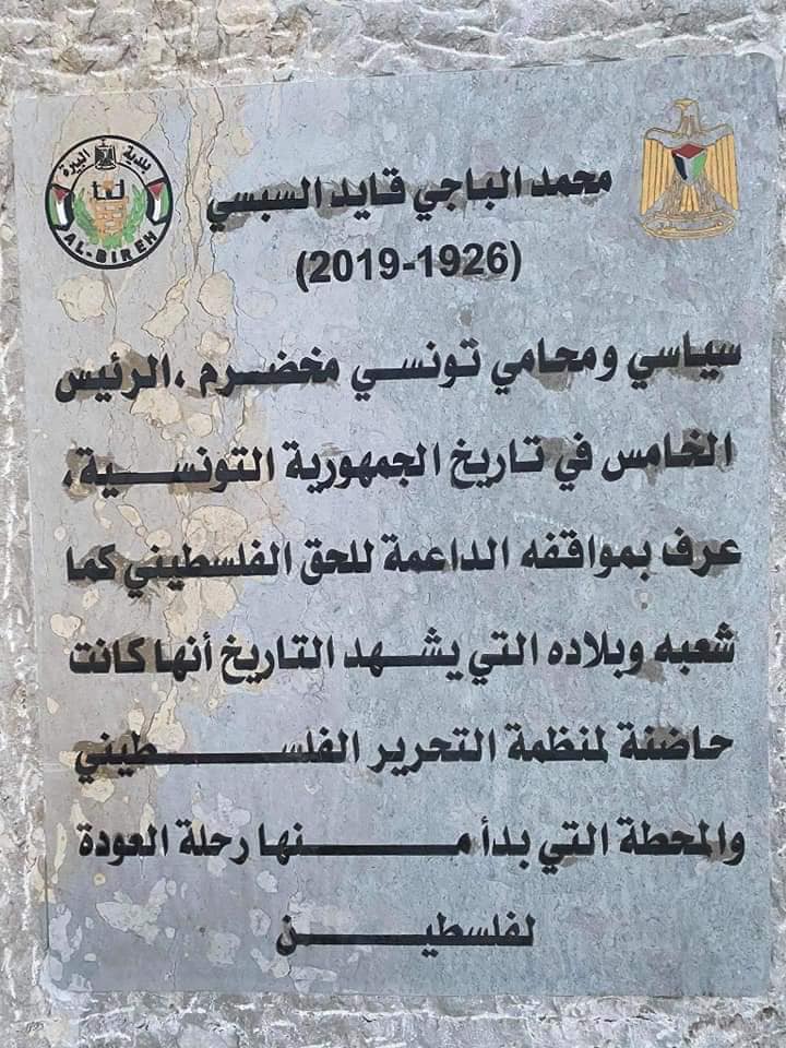 تم مؤخرا تدشين ميدان يحمل إسم الرئيس الراحل ''الباجي قايد السبسي'' في مدينة رام الله الفلسطينية.