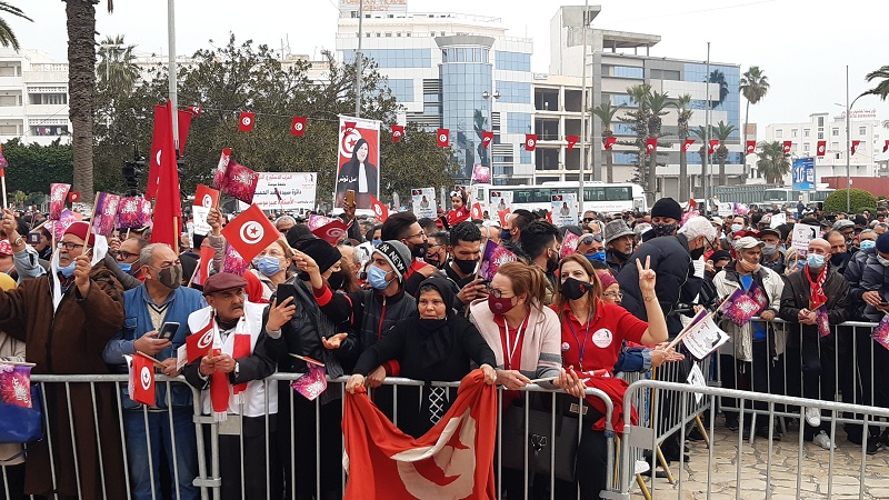 تحت شعار 'ثورة التنوير' نظم الحزب الدستوري الحر صباح اليوم الأحد 21 فيفري 2021 اجتماعا شعبيا بساحة سيدي يحي سوسة تحت إشراف رئيسة الحزب عبير موسي، حضرها آلاف المواطنين (3 آلاف وفق تقدير أمني).