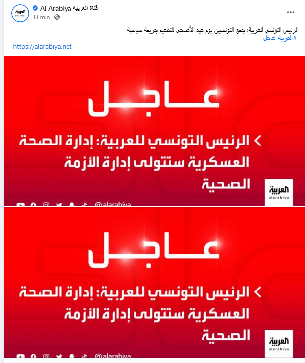 قال رئيس الجمهورية قيس سعيد في تصريح خاص لقناة ''العربية'' اليوم الأربعاء، إن ''جمْع التونسيين يوم عيد الإضحى للتطعيم جريمة وراءها غايات سياسية''.