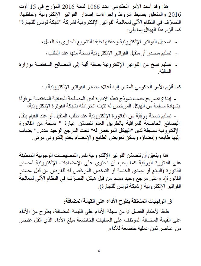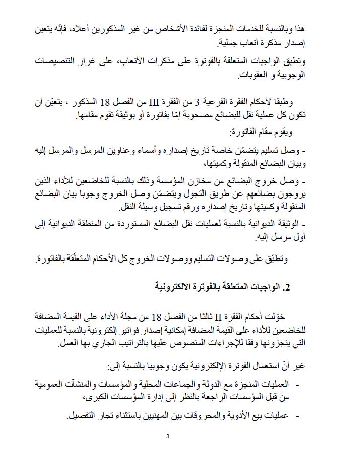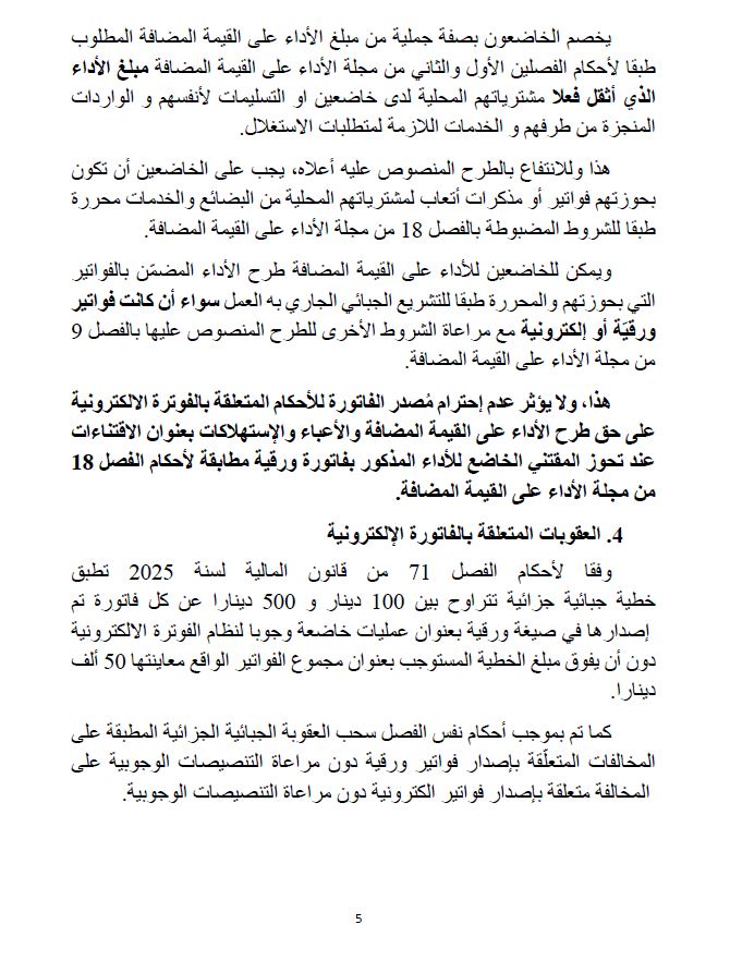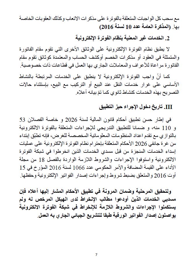 حيث تم بمقتضى أحكام الفصل 53 من القانون عدد 17 لسنة 2025 المؤرخ في 12 ديسمبر والمتعلق بقانون المالية لسنة 2026 توسيع مجال التعامل بنظم الفوترة الالكترونية وذلك ليشمل عمليات إسداء الخدمات.