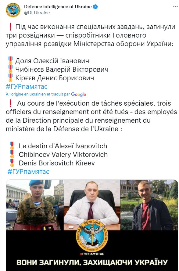 بعدما تداولت وسائل إعلامية مقتل أحد أعضاء فريق التفاوض الأوكراني مع روسيا، أكّد جهاز الاستخبارات الأوكراني، مساء اليوم في تغريدة على "تويتر"، مقتل 3 من موظفيها، من بينهم عضو في وفق التفاوض.
