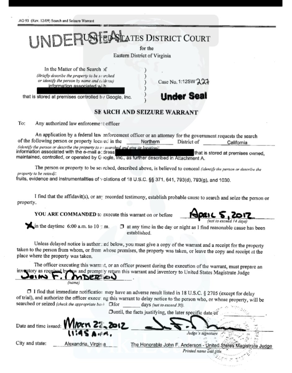 والوثيقة، التي نشرتها وكالة أنباء "سبوتنيك" الروسية عبارة عن أمر قضائي ضمن قضية للدفاع عن 3 من صحفيي ويكيليكس' تلزم فيه المحكمة شركة غوغل بالسماح للإدارة الأمريكية بالتعرف على محتويات البريد الوارد للصحفيين الثلاثة، وذلك في عام 2012، وهو ما لم يعلمه الصحفيون المتجسس عليهم إلا بعد الواقعة بـ32 شهرًا كاملة.