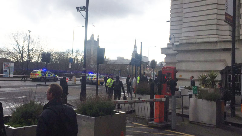 وعرض تلفزيون سكاي نيوز صورا لازدحام مروري على جسر وستنمستر القريب وصورا لعربات الاسعاف تهرع الى المكان. واغلق الجسر المزدحم تماما أمام حركة السير، وتدفق ''رجال الشرطة المسلحة'' على المنطقة التي أغلقت امام العامة .