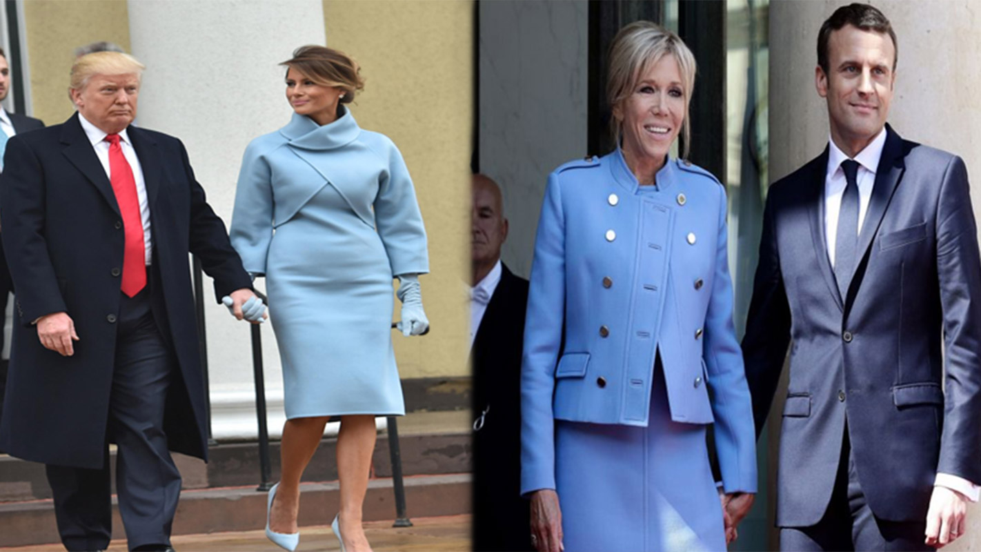 وقد شبّه كثيرون فستان زوجة ماكرون بما ارتدته زوجة الرئيس الأمريكي دونالد ترامب خلال حفل تنصيبه في شهر جانفي الماضي، حيث ظهرت بفستان أزرق مكوّن من قطعتين فقد كان الإختلاف في لون الحذاء وشكل الحقيبة.
