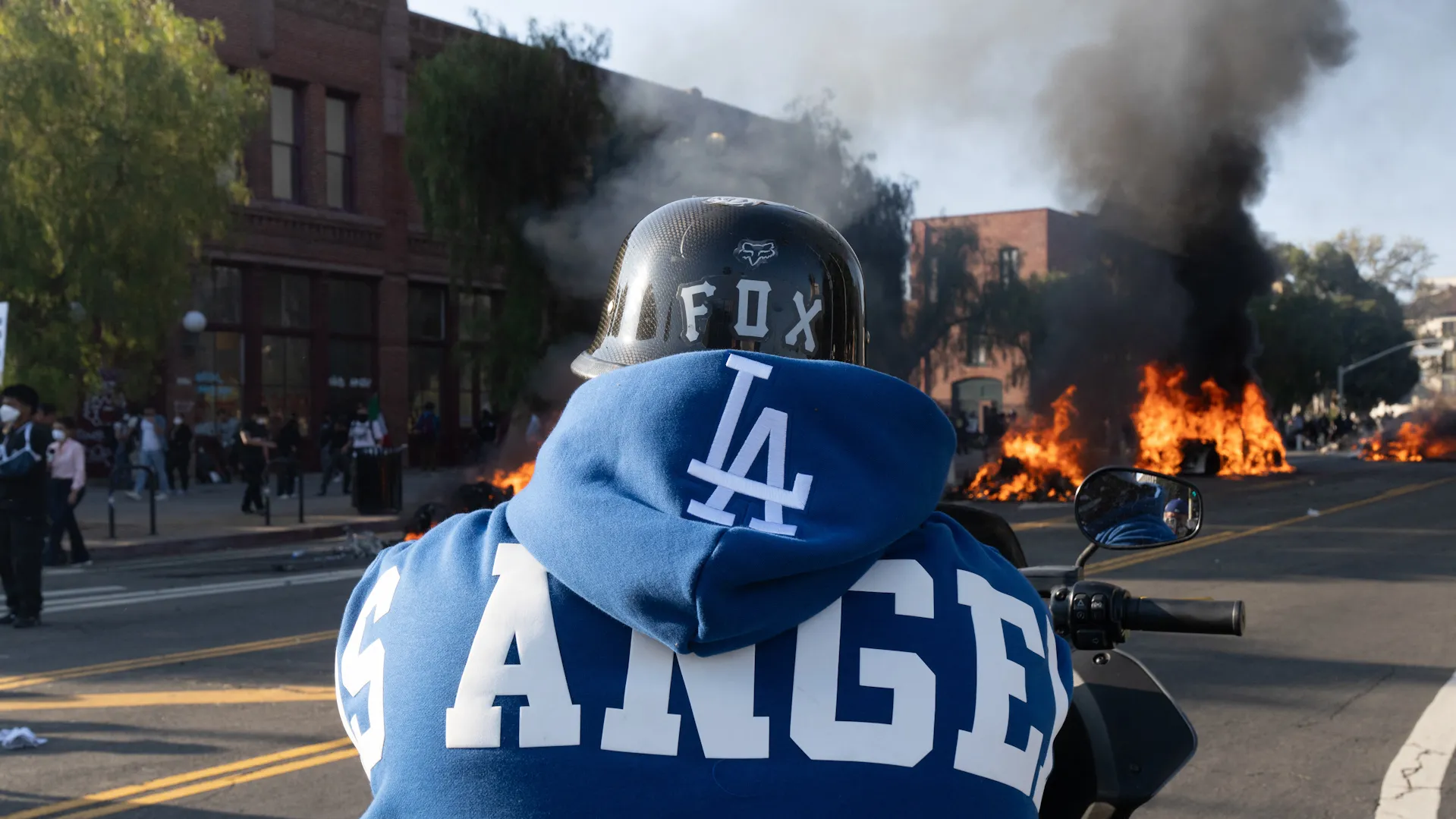 بدأت الاحتجاجات إثر احتجاز أكثر من 40 شخصا في عمليات مداهمة للهجرة في جميع أنحاء لوس أنجلوس، مما أثار اشتباكات بين الضباط والمتظاهرين تحوّلت إلى أعمال عنف وأسفرت عن إلقاء الشرطة قنابل الغاز المسيل للدموع على الحشد.