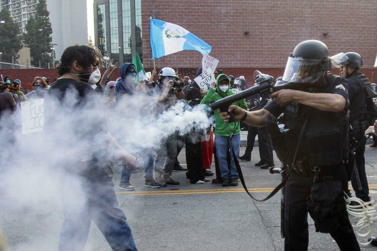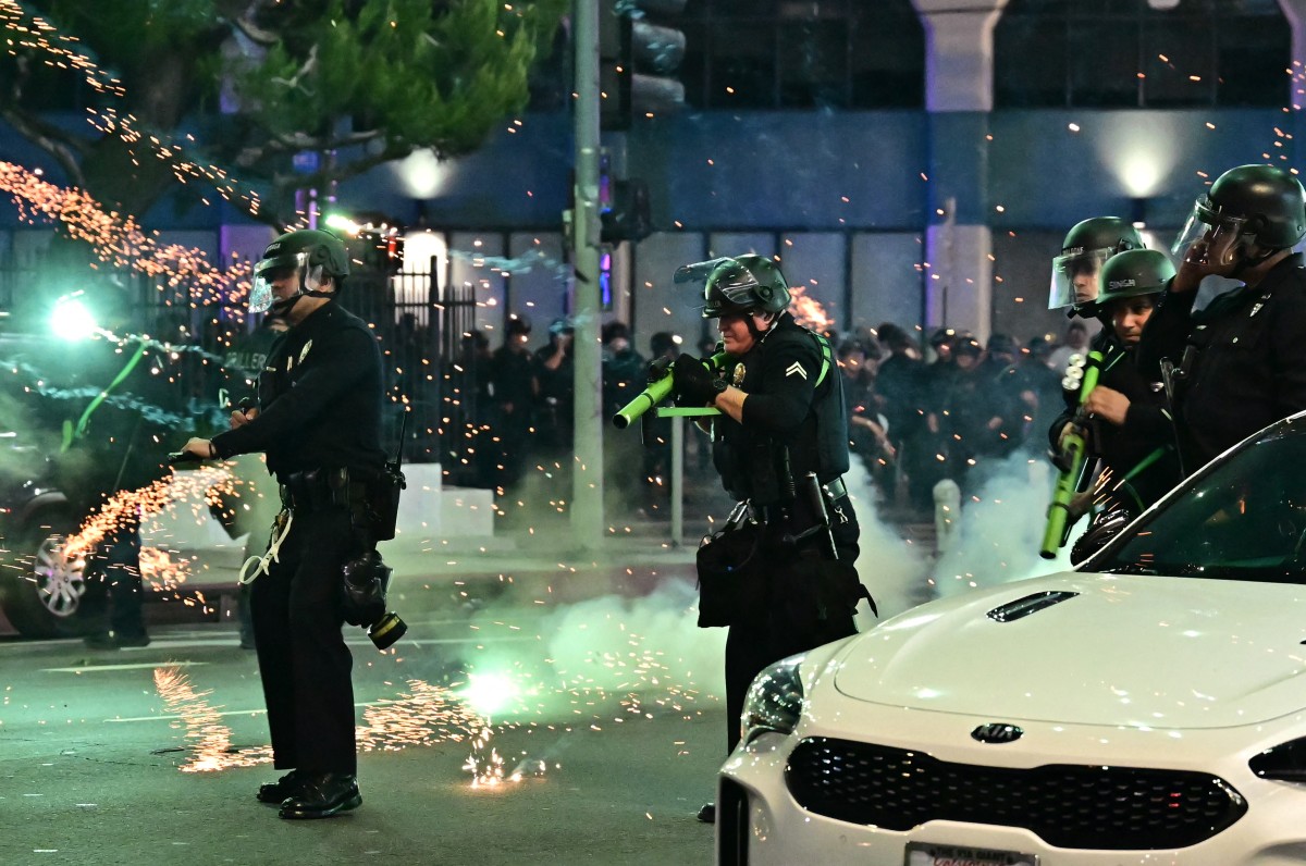وبدأت عناصر الحرس، الأحد الماضي، الانتشار في لوس أنجلوس، ورافقتها قوات 'المارينز' بتوجيهات من وزارة الدفاع الأمريكية (البنتاغون)، فتجدّدت الاشتباكات أمام مركز الاحتجاز الفدرالي واستعملت قوات حفظ الأمن الرصاصات المطاطية والغاز المدمع ضدّ المحتجين، فضلا عن اعتقالها عددا منهم.