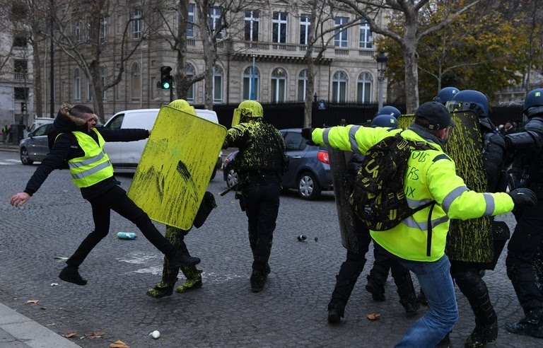 وقبل أسبوع تجمع آلاف المحتجين في باريس لأول مرة وحولوا شارع الشانزليزيه إلى ساحة قتال بعد اشتباكهم مع الشرطة التي استخدمت الغاز المسيل للدموع وخراطيم المياه.