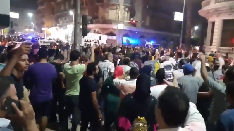 ونقل ناشطون عبر منصات التواصل الاجتماعي المختلفة وقنوات معارضة للنظام تبث من الخارج، مقاطع فيديو تظهر تواجد أعداد من المصريين في ميدان التحرير، وعدة ميادين وسط هتافات ضد السيسي.