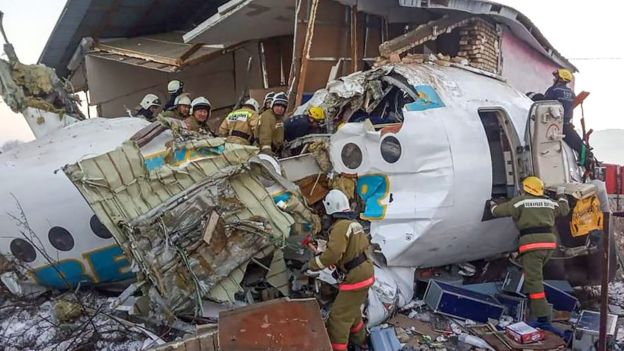 وذكرت سلطات الطيران في كازاخستان، أن الطائرة كانت تقل 95 راكبا، وطاقما من خمسة أفراد، وقد سقطت قرب مدينة ألماتي، في الدولة الواقعة في وسط آسيا.