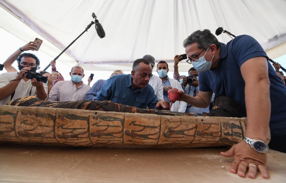 أعلن وزير السياحة والآثار المصري عن اكتشاف 59 تابوتا داخل آبار للدفن في منطقة سقارة الأثرية. وعثر على هذه التوابيت الخشبية الملونة مرصوصة فوق بعضها البعض داخل 3 آبار للدفن، علي أعماق مختلفة تتراوح ما بين 10 و12 مترا.