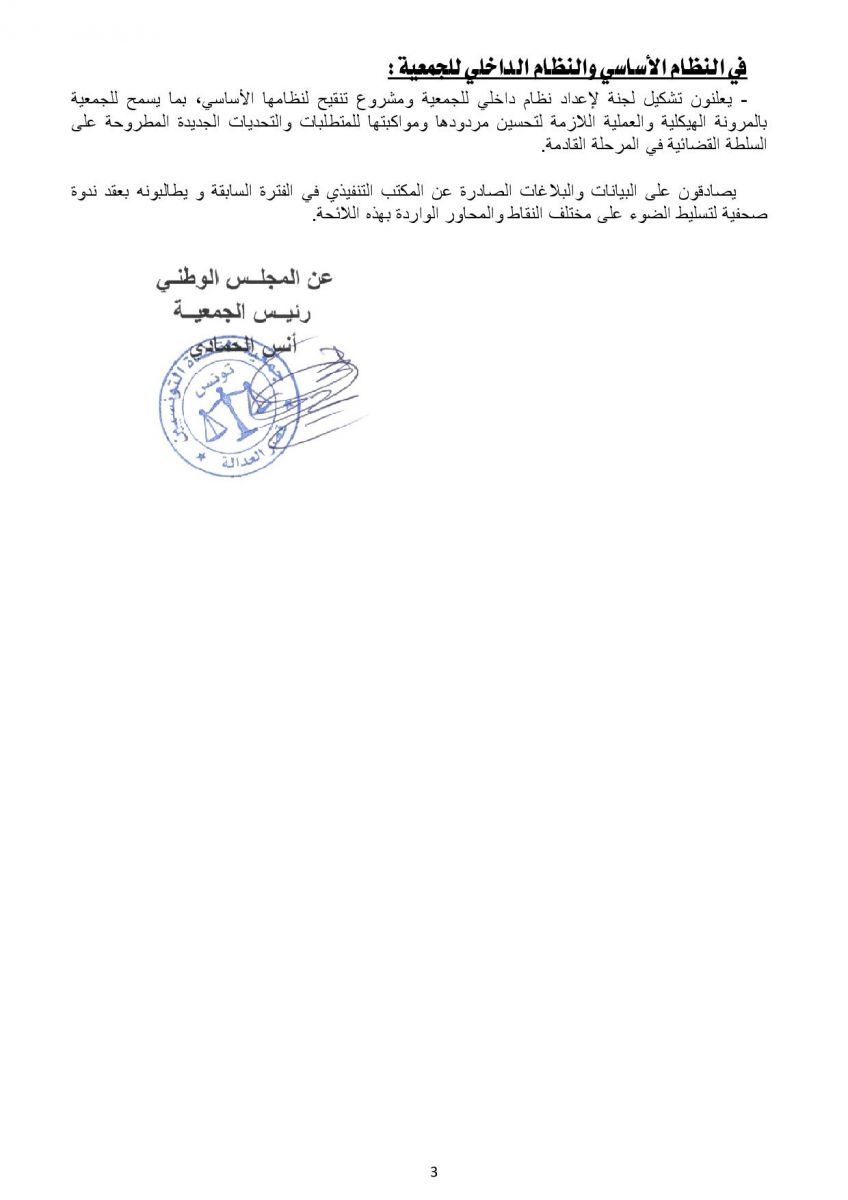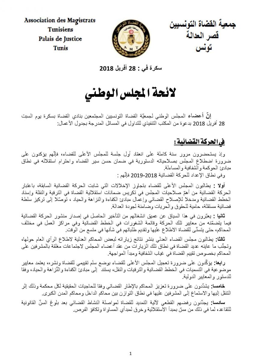 عبر أعضاء المجلس الوطني لجمعيّة القضاة التونسيين  في لائحة عن انشغالهم من التأخير الحاصل في إصدار منشور الحركة القضائية، حتى يتسنّى للقضاة الإطلاع عليها وتقديم طلباتهم في شأنها في متسع من الوقت.
