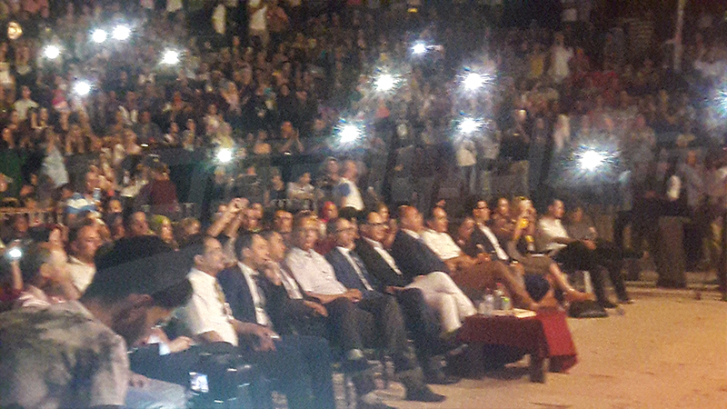 و قدّم الفنان التونسي عددا من أغانيه القديمة والجديدة وسط تفاعل كبير من جماهيره بسبيطلة ليعبّر ختاما عن سعادته بوجوده بالمسرح الأثري بسبيطلة بما يعنيه مكان وزمان الحفل من رمزية.