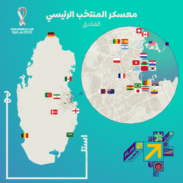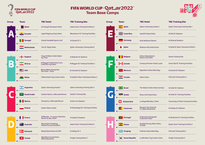 كشف الاتحاد الدولي لكرة القدم اليوم الثلاثاء 26 جويلية 2022 عن مقر إقامة المنتخبات المشاركة في كأس العالم قطر 2022 و التي ستقام نهاية السنة الحالية.