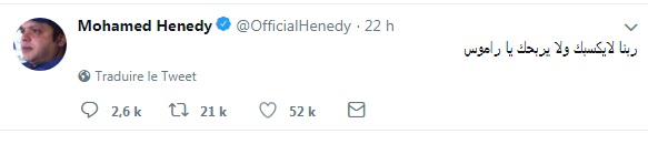 واضاف هنيدي في تعليق اخر مهاجما راموس :''ربنا لايكسبك ولا يربحك يا راموس''