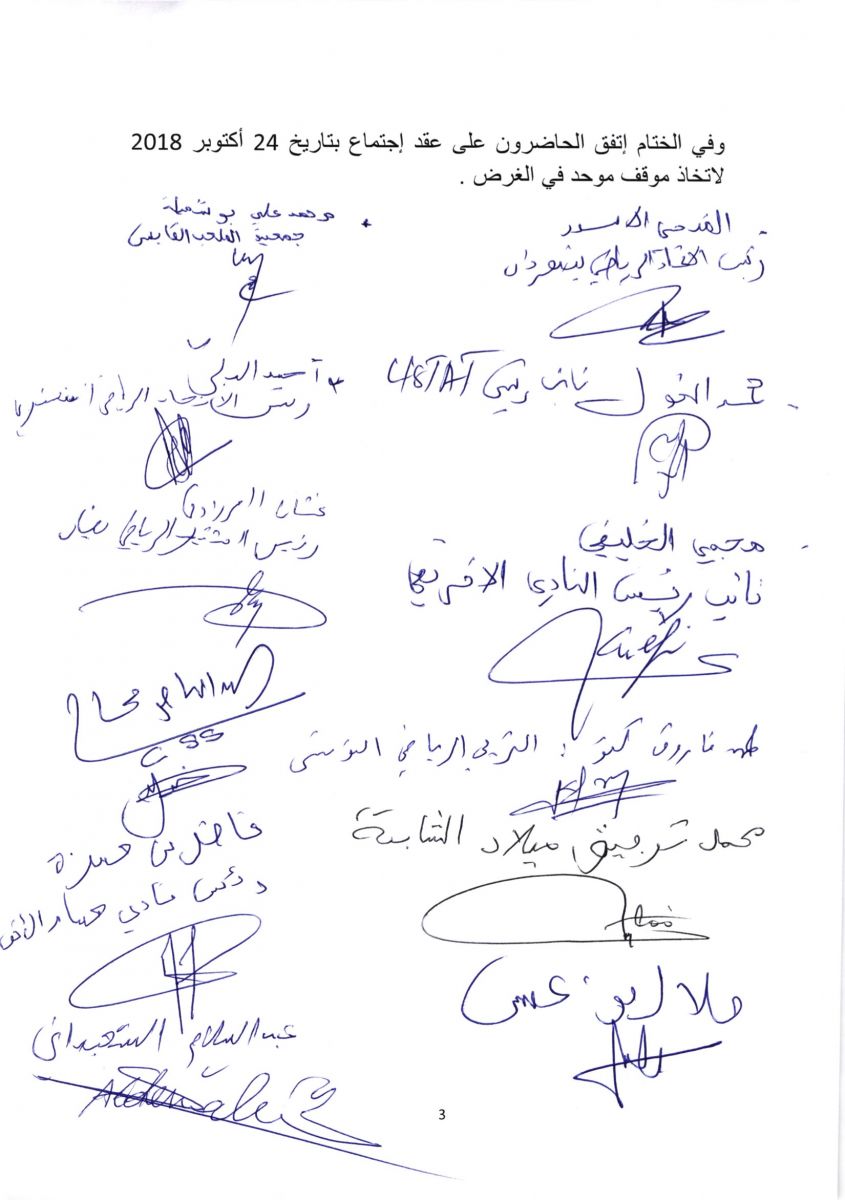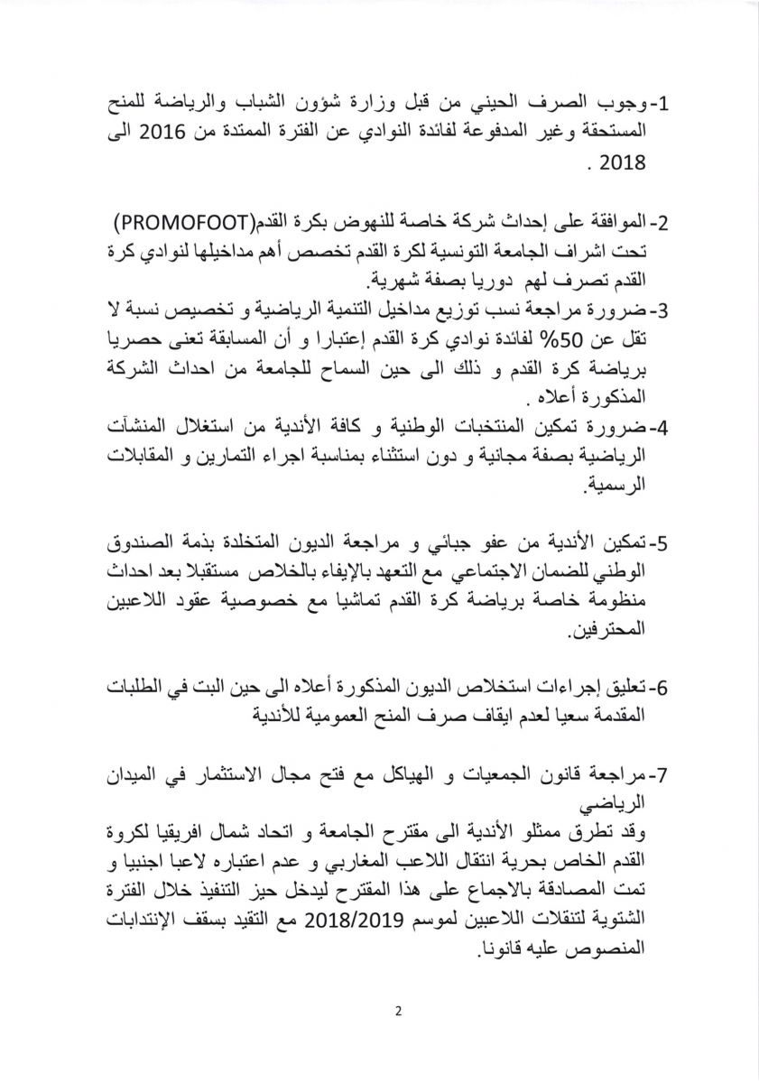كما طالبوا باعادة النظر في توزيع المنابات المتأتية من شركة النهوض بالرياضة أو السماح للجامعة بتأسيس شركة تنمية رياضية خاصة بكرة القدم .