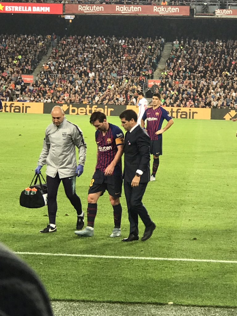 وبعد الإصابة حاول ميسي إكمال المباراة من خلال استخدام ضمادة على يده، ولكن الإصابة كانت أقوى من إرادة الأرجنتيني الذي غادر المباراة في الدقيقة 24 ، ويحل عثمان ديمبلي بديلا له.