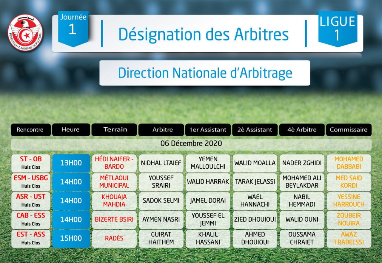 تدور يوم الأحد 06 ديسمبر 2020 مباريات الجولة الأؤلى من منافسات بطولة الرابطة المحترفة الأولى لكرة القدم.