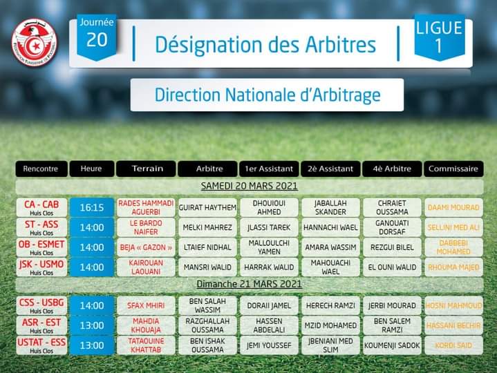 وقد وقع الاختيار على هيثم قيراط لإدارة قمة النادي الافريقي والنادي البنزرتي، وفي ما يلي بقية التعيينات: