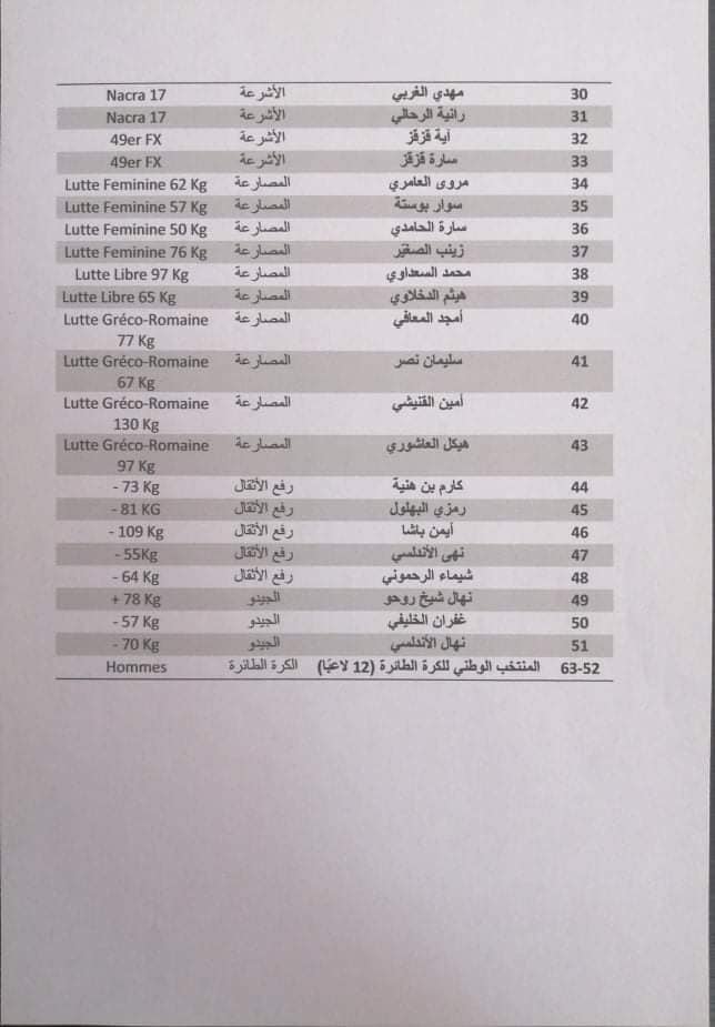 استقر العدد الجملي والنهائي للمترشحين والمترشحات التونسيين للألعاب الأولمبية طوكيو 2020، على 63 رياضيًّا ورياضية .