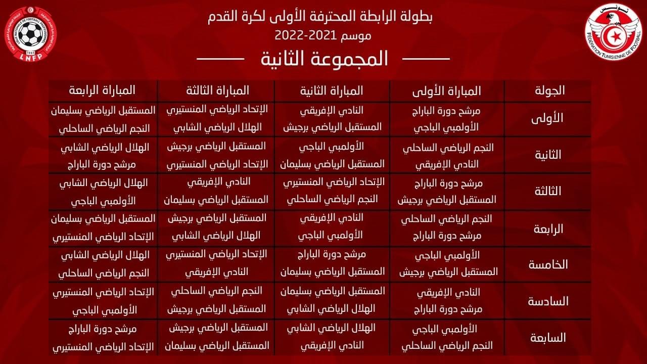 سُحبت اليوم الثلاثاء 28 سبتمبر 2021 بمقر الجامعة التونسية لكرة القدم قرعة بطولة الموسم 2021-2022 من الرابطة المحترفة الاولى بمجموعتيها الأولى والثانية.