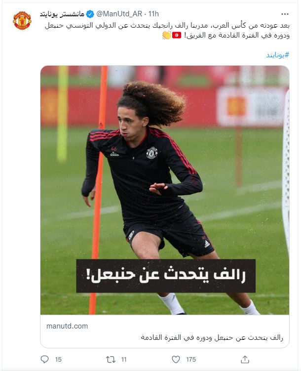 يتطلع الألماني رالف رانجنيك، مدرب مانشستر يونايتد، لأن يصبح لاعب الشباب التونسي الواعد، حنبعل المجبري، جزء من الفريق الأول بعد مشاركته في نهائيات كأس أمم إفريقيا مع منتخب بلاده.