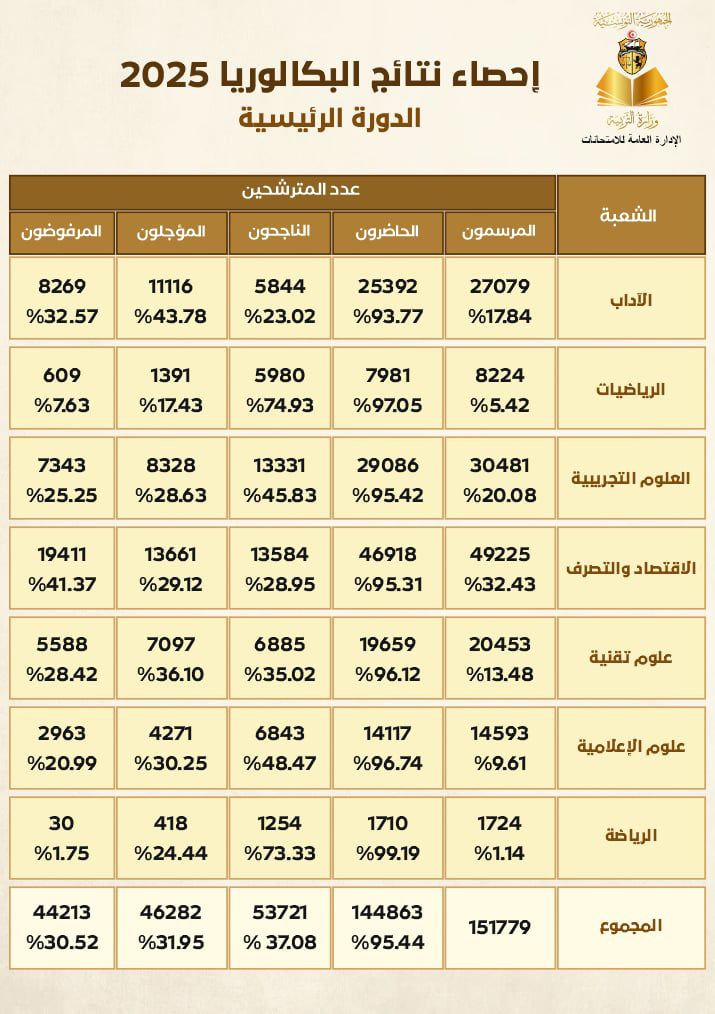 إحصائيات نتائج البكالوريا 2025 / الدورة الرئيسية