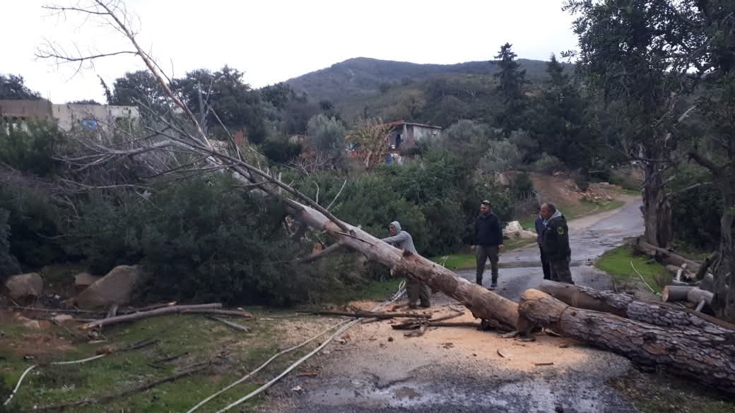 تسببت الرياح القوية التي شهدتها مختلف مناطق ولاية جندوبة ليلة البارحة الأربعاء 28 جانفي 2026 و صباح اليوم الخميس 29 جانفي 2026 والتي تجاوزت سرعتها 90 كلم في الساعة إضافة إلى تساقطات مطرية في سقوط أشجار وأغصانها بعدد من الطرقات والمسالك ممّا تسبب في انقطاع ظرفي للحركة المرور وهو ما استوجب تدخل وحدات الحماية المدنية واللجنة الجهوية لمجابهة الكوارث وتنظيم النجدة بأكثر من منطقة لازالة الأشجار وإعادة الحركة المرورية إلى وضعها الطبيعي.