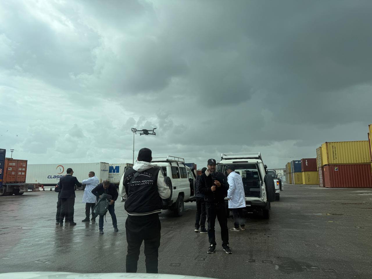 وجرى خلال العملية استعمال المخابر المتنقلة والمعدات المتخصصة التابعة للمركز للقيام بعملية مسح للحاويات المتواجدة بالميناء.