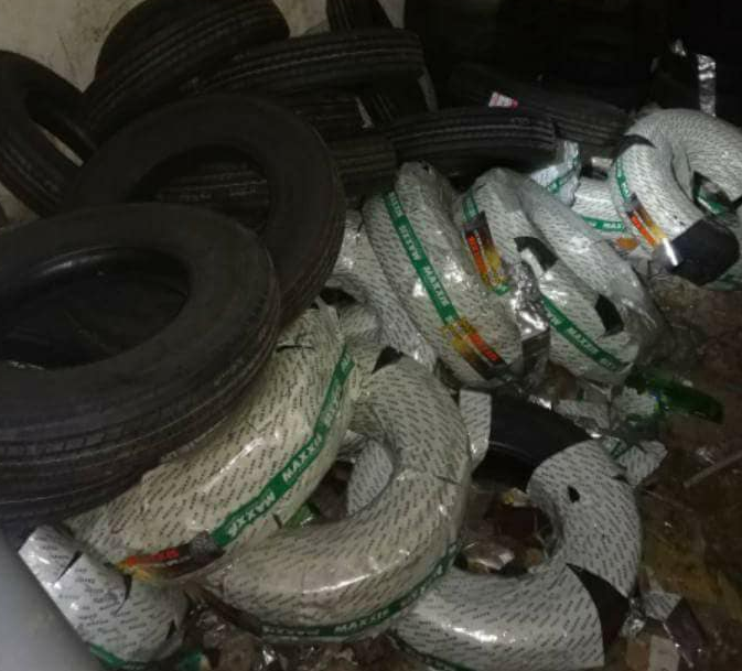 و من جهة أخرى، و على إثر معلومة مفادها توفّر كمّية من العجلات المطاطية المهرّبة بمستودع بجهة الميدة من ولاية نابل، تولّى مكتب الإستعلامات الديوانية مداهمة المستودع المذكور أين تمّ حجز 300 إطار مطاطي كبيرة الحجم قدّرت قيمتها بـ 150 الف دينار. وتم تحرير محضر في الغرض.