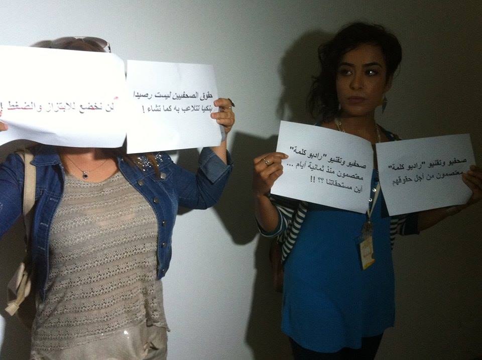 نفذ صحفيو و تقنيو راديو "كلمة" مساء الاثنين 17 أكتوبر 2016 وقفة احتجاجية داخل مقر مجلس نواب الشعب بباردو رافعين شعارات تندد بطردهم التعسفي من الإذاعة ".