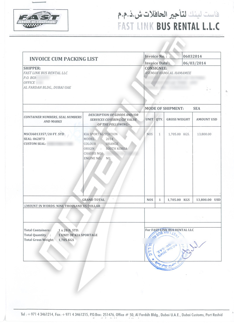 تحصّلت موزاييك أف أم  على نسخة من الفاتورة الخاصة بسيارة ابنة حمّة الهمامي أسيمة وقد أكّد الهمامي أن ابنته اقتنتها من وكيل سيارات لبناني بدبي بالإمارات العربية المتحدة.