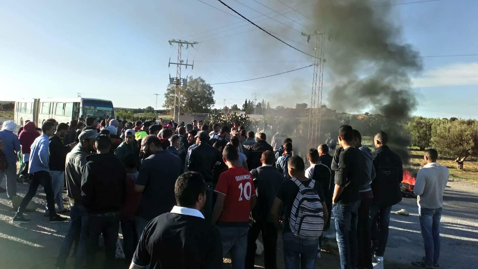 النفيضة: غلق طريق وإشعال عجلات مطاطية