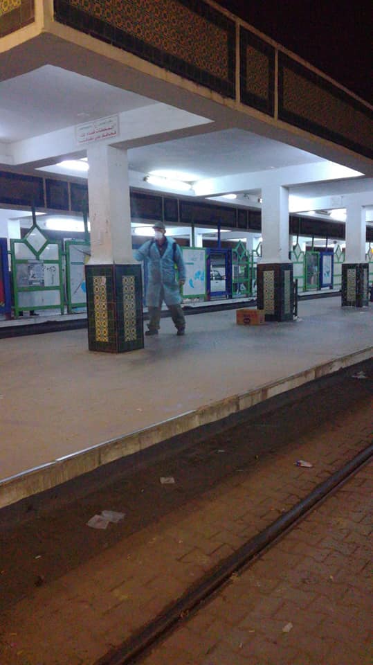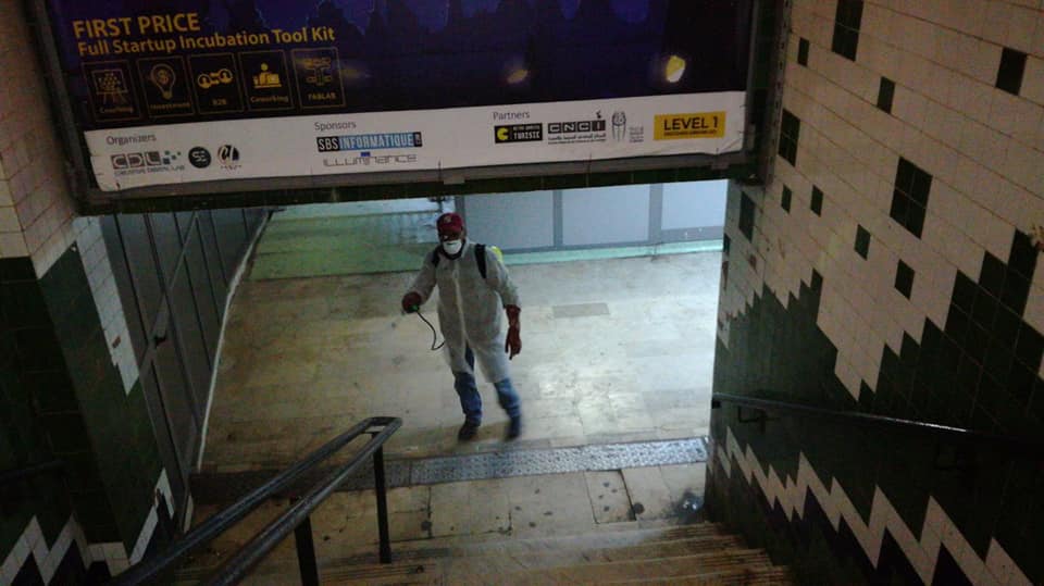 قام أعوان حماية المحيط ببلدية تونس، عشية اليوم الخميس، بتعقيم وتطهير محطة المترو الخفيف "بالباساج"، في إطار الخطة الوطنية لمجابهة فيروس "كورونا" المستجد.