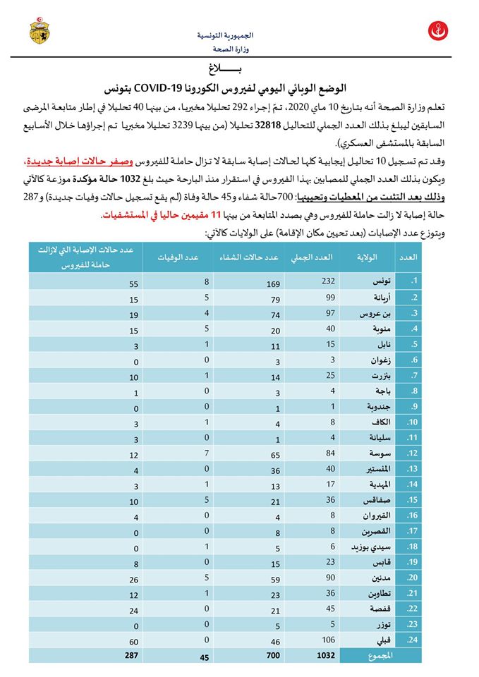 وقد تراجع عدد الإصابات الحالية في العاصمة إلى 55 إصابة، تليها ولاية مدنين بـ26 إصابة.. وتأتي باجة في الترتيب الأخير بـإصابة وحيدة متبقية، في حين خلت 5 ولايات من الفيروس..