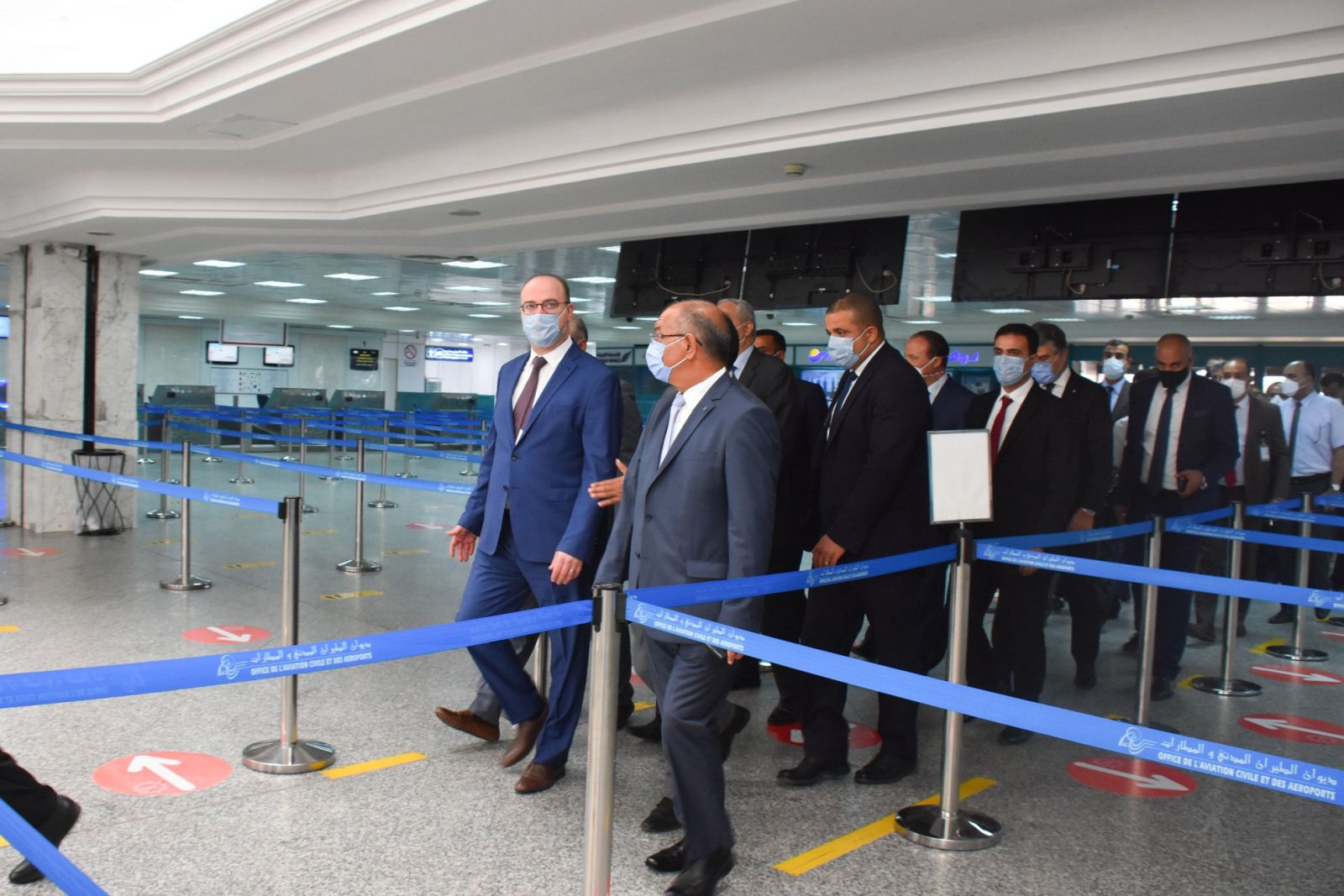 كما إطلع على نشاط خلية المتابعة "COVID-19" والتي تم إنشاؤها للمتابعة الميدانية بمختلف فضاءات المطار قصد مراقبة مدى تطبيق حمل الكمامات واحترام التباعد الجسدي طيلة التواجد بالمحطة الجوية من طرف كافة العاملين بالمطار، ونقاط أخذ العينات للتحليل المخبري PCR والتي تم تدعيمها لتعمل بمعدل 500 تحليل يوميا لفائدة مختلف الموظفين.
