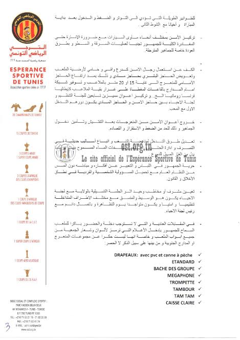 وجهت الهيئة المديرة للترجي الرياضي التونسي إلى وزيرة شؤون الشباب والرياضة ماجدولين الشارني مراسلة ممضاة من قبل رئيس النادي حمدي المدب، طرحت من خلالها مجموعة من الحلول سعيا لتوفير المناخ الملائم والظروف الطيبة لحضور الجماهير مقابلات الفريق في أفضل الظروف دون أي عراقيل وكذلك إلى القضاء على غول العنف الذي ينخر رياضتنا.