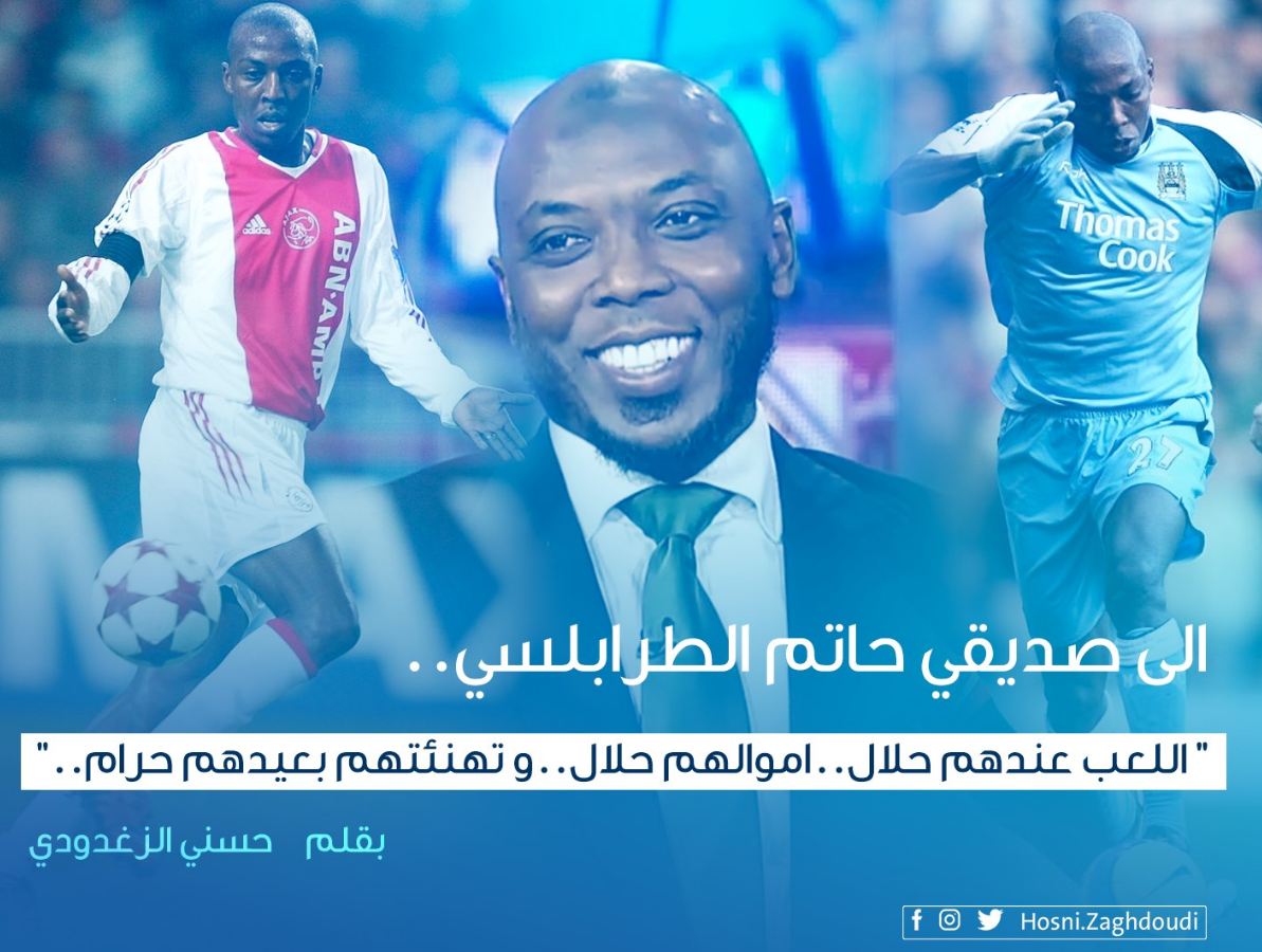 كما تساءل "أين التسامح يا حاتم.. فالرسول محمد ﷺ كان متسامحا مع وفد نصارى نجران وسمح لهم بالصلاة في مسجده.. أنت محلل رائع بعدما كنت لاعبا مميزا، لكنني لا افهم إصرارك لإحراز لقب شيخ السلفية الرياضية...اللعب عندهم حلال..والسكن عندهم حلال.. وأموالهم حلال محلل.. و تهنئتهم بعيدهم حرام.. أخوك (إن مازلت تراني كذلك) حسني الزغدودي".