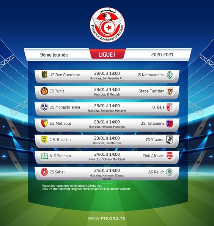 برنامج مباريات الجولة التاسعة لبطولة الرابطة الأولى المحترفة لكرة القدم: